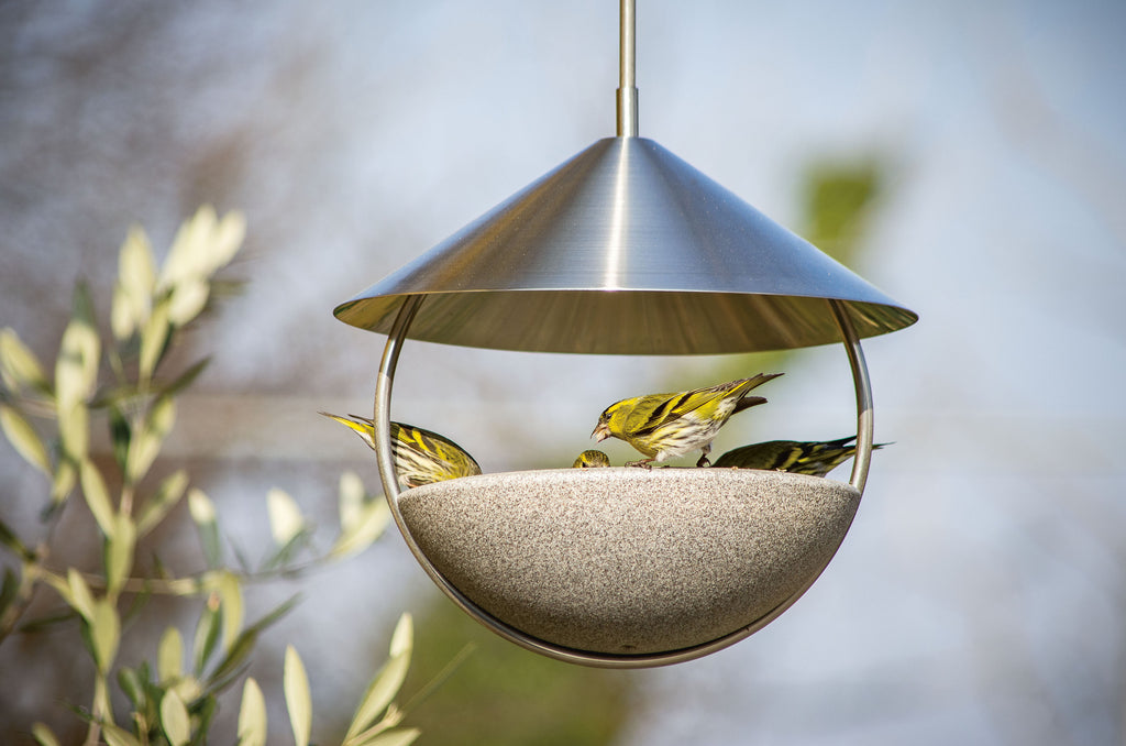 Im Herbst und Winter dient Around als Futterstelle. Entwässerungslöcher in der Schale verhindern Staunässe. Im Sommer wird die Schale gegen eine geschlossene Variante ausgetauscht – so entsteht im Handumdrehen eine Vogeltränke. Die hochwertige Granicium®-Schale bietet durch ihre raue Oberfläche sicheren Halt für Vögel und Insekten.