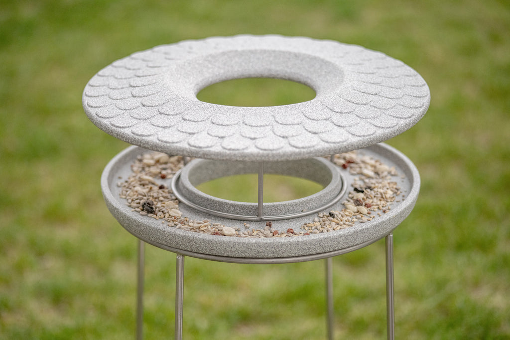 Das patentierte Futterhaus vereint artgerechte Fütterung mit modernem Design. Die offene Konstruktion ermöglicht den Vögeln einen sicheren Anflug von allen Seiten - und Ihnen faszinierende Einblicke beim Beobachten.