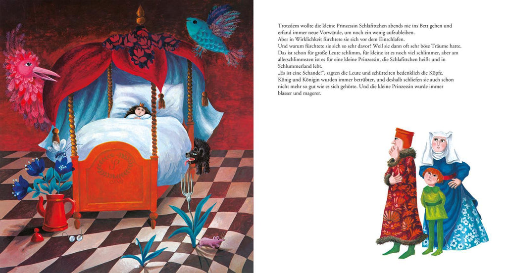 Angst vor bösen Träumen zu haben und nicht einschlafen zu können ist schon für große Leute schlimm. Für kleine ist es noch viel schlimmer. Aber am allerschlimmsten ist es für eine kleine Prinzessin, die Schlafittchen heißt und in Schlummerland lebt ...