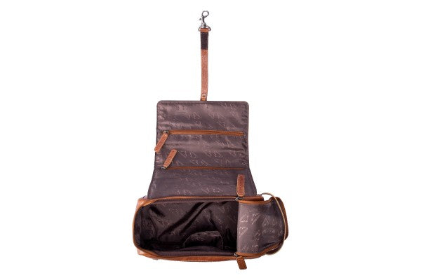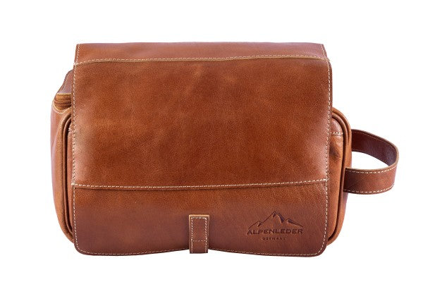 Das praktische Raumwunder im handlichen Format. Der »ROLL UP« bietet deshalb soviel Platz, weil sein Hauptfach auf der einen Seite mit seinen drei Einzelfächern und auf der anderen fünf Gummibänder zum fixieren seiner Badutensilien hat. Dazu kommen noch ein Reißverschlussfach an der Außenseite und zwei Reißverschlussfächer an der Innenseite der Umschlagklappe. Somit ist alles stets griffbereit. Die Umschlagklappe besitzt einen stabilen Karabinerhaken, der sowohl als Verschluss als auch zum Aufhängen des Kulturbeutels an einem Wandhaken dient. Der Vollleder-Kulturbeutel »ROLL UP« ist mit einem wasserabweisenden Innenfutter ausgestattet.