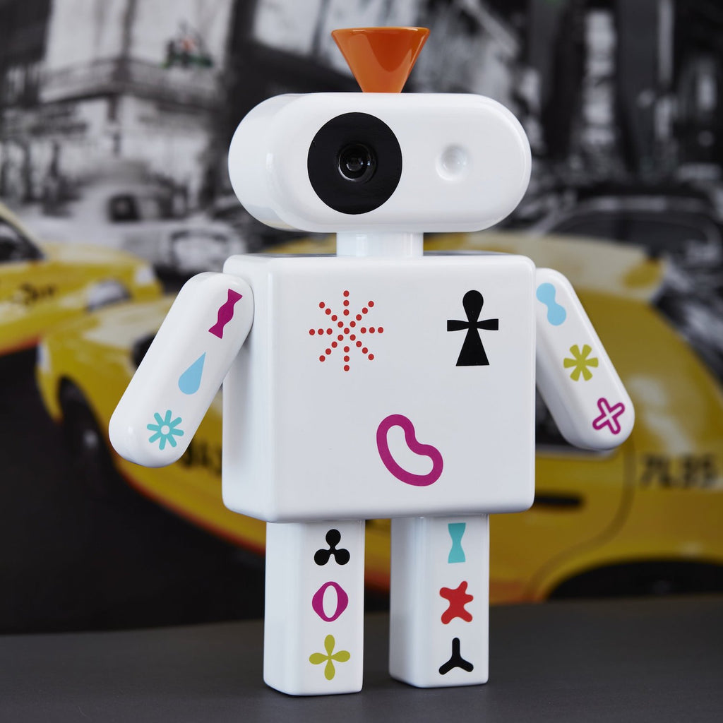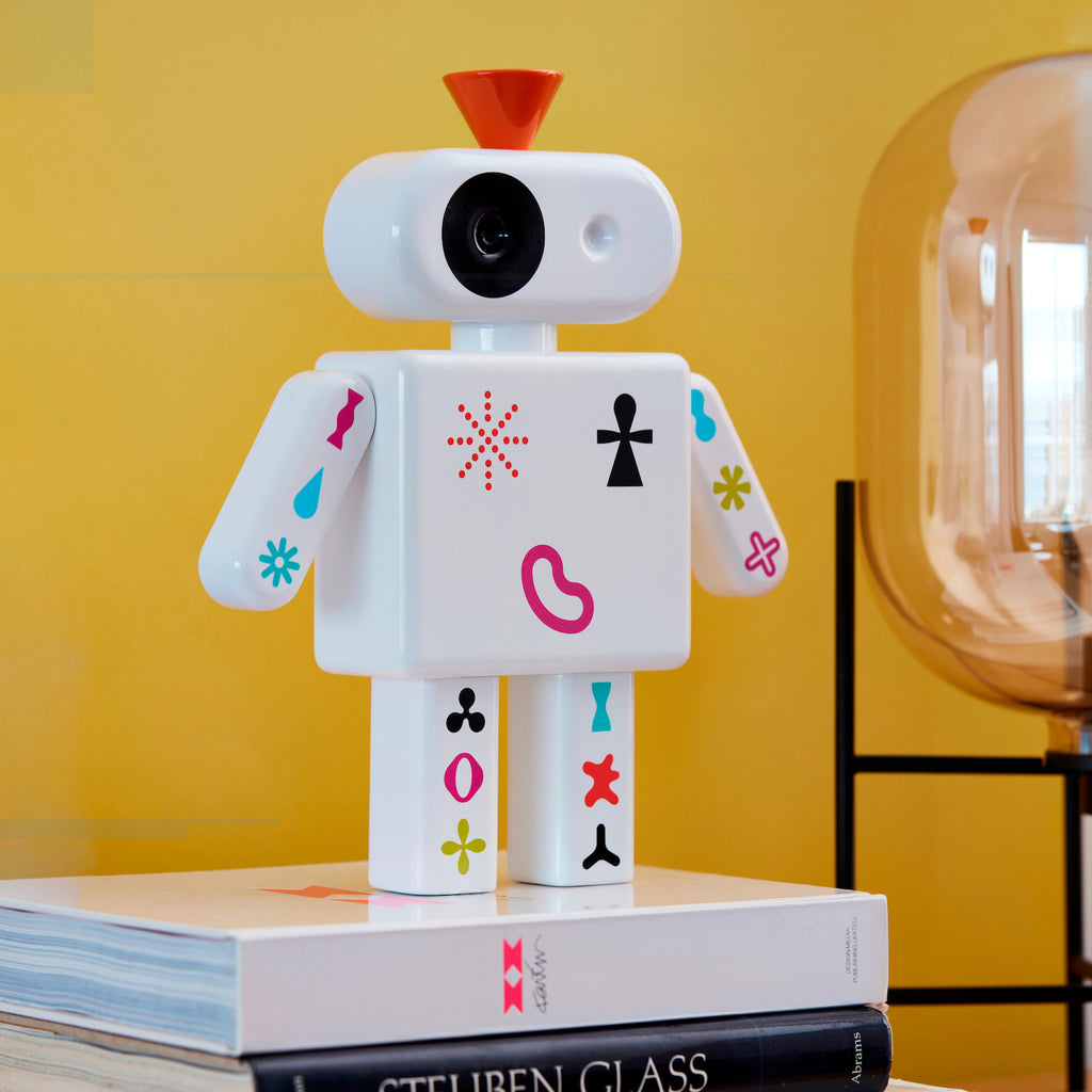 QUENTIN Play erhellt jeden Raum. Dieser Artbot ist bei jedem Abenteuer stets an Ihrer Seite. Sein verspieltes, ikonisches Design ist eine Anspielung auf klassische Joysticks und Controller und lässt das Kind in Ihnen zum Leben erwachen. Limitierte Sammleredition.