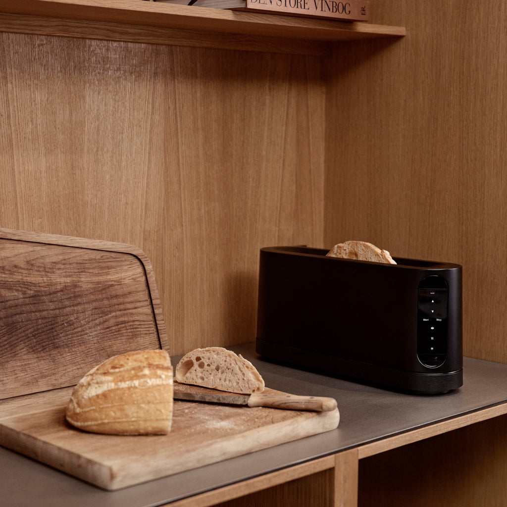 Der Jacob Jensen Long Slot Toaster verbindet Funktionalität mit zeitloser Eleganz. Gefertigt aus hochwertigen Materialien, präsentiert er sich mit einer klaren, reduzierten Formensprache, die in jede Küche passt. Das bewegungsaktivierte Display zeigt Röstzeit und Programme nur dann an, wenn sie gebraucht werden. Mit 7 Röststufen, Bagel-, Aufwärm- und Auftaufunktion sowie Soft-Lift-Mechanismus sorgt er jeden Morgen für perfekten Toast – ob freistehend oder an der Wand platziert.