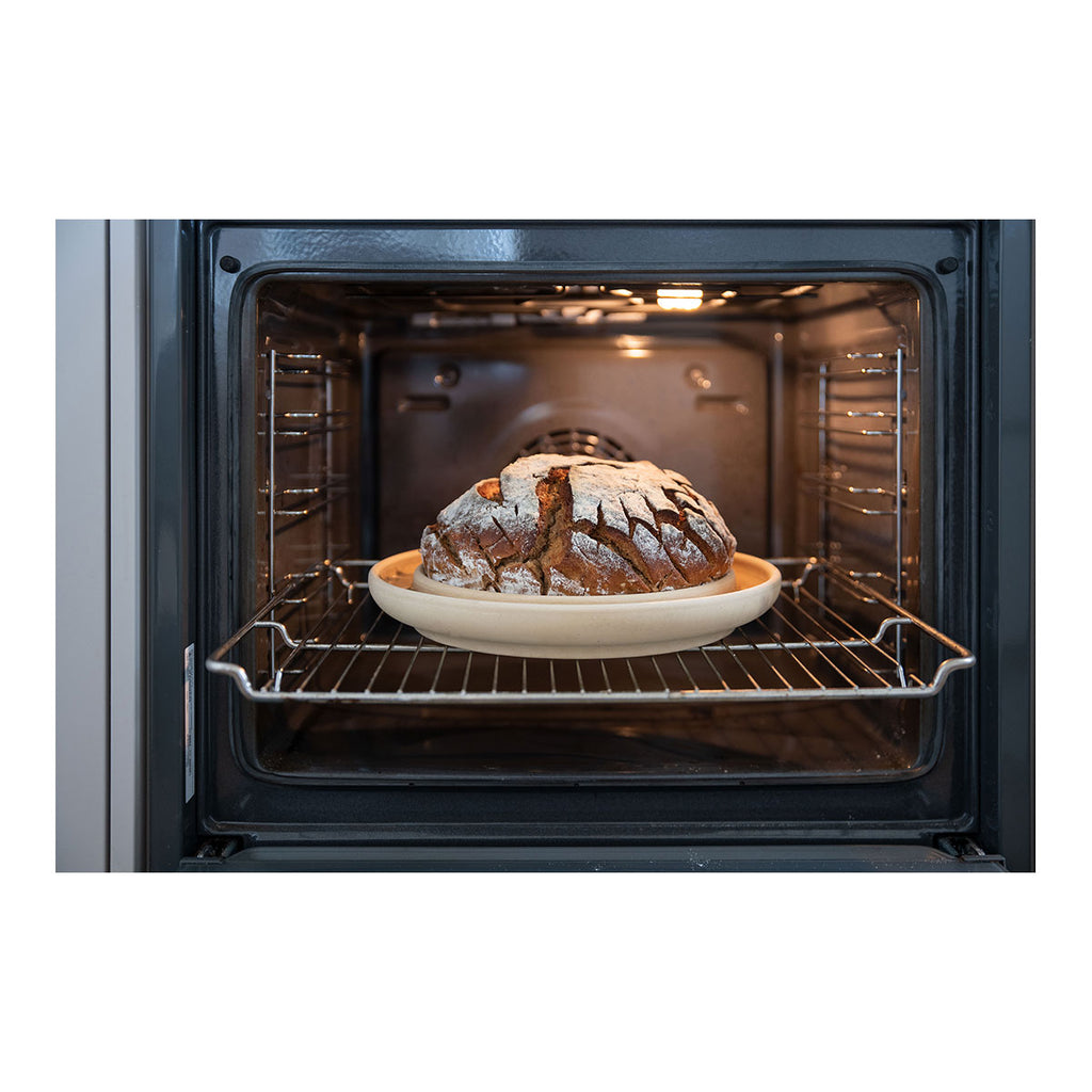 - Die integrierte Rinne wird vor dem Backen mit Wasser gefüllt und erzeugt beim Erhitzen einen sanften Dampf - ganz wie in einem Holzofen. So entsteht eine goldbraune, knusprige Kruste, wie man sie sonst nur vom Bäcker kennt.