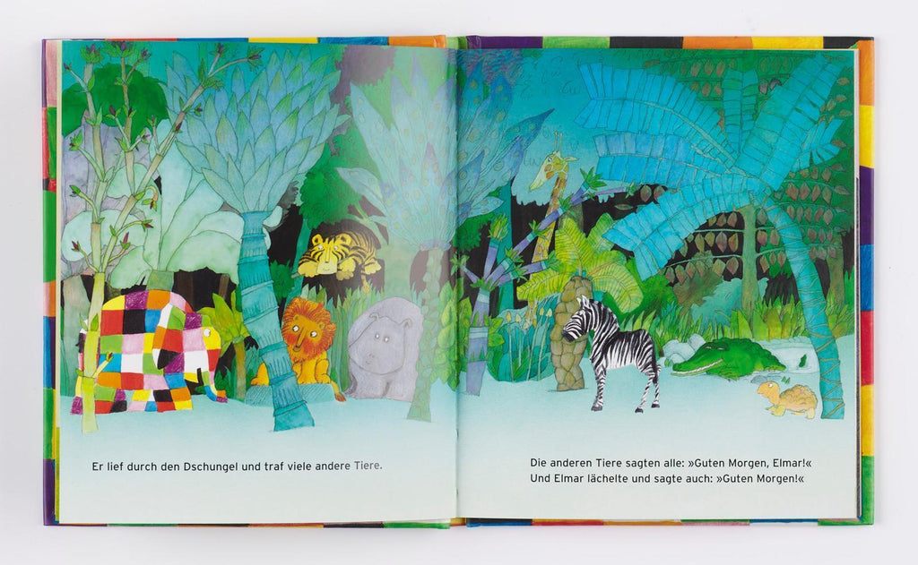 Elmar ist kein Elefant wie jeder andere. Er ist bunt kariert und kein bisschen elefantenfarben. Er ist fröhlich und hat den Kopf voller Streiche. Doch insgeheim wünscht Elmar sich, genauso auszusehen wie jeder andere Elefant. Und eines Tages fasst er einen Plan. Er wälzt sich in grauen Beeren und reiht sich heimlich unter die anderen Elefanten. Doch als es regnet, wäscht sich Elmars Elefantengrau wieder weg. Zum Glück! Denn Elmar ist genau richtig so wie er ist.