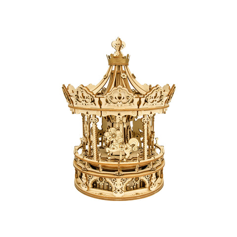 3D-Holzpuzzle, Karussell, beweglich, mit Musikwerk