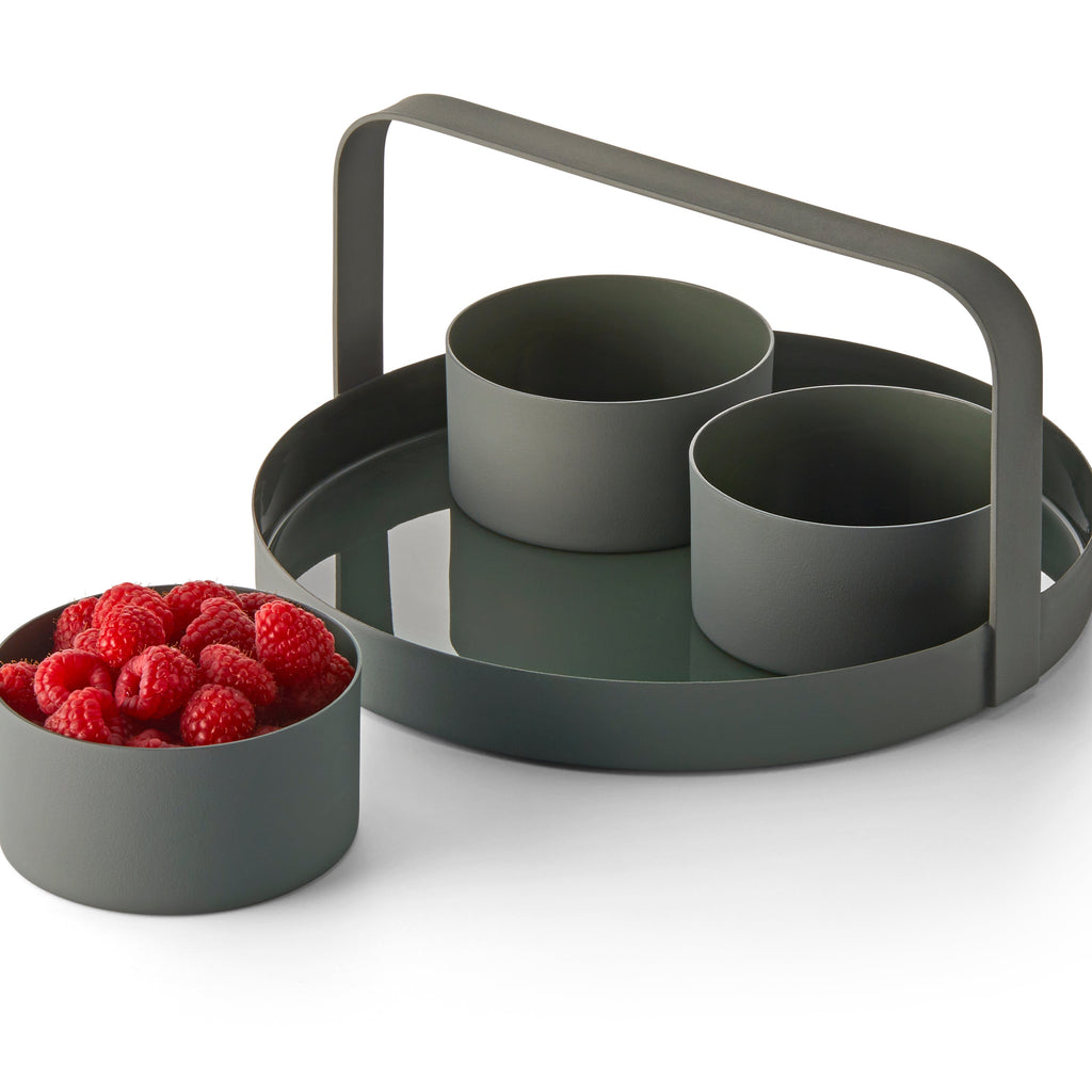 Ein Tablett, drei Schalen, hundert Möglichkeiten: Das minimalistisch-moderne Snackset CLARA von PHILIPPI ist der stilvolle Allrounder für Genießer. Ob Filmabend mit Popcorn, Tapas für Gäste oder frisches Obst zwischendurch – CLARA serviert alles mit Stil. Der praktische Tragegriff des Tablets sorgt im Handumdrehen für Nachschub. Das reduzierte Design in der Trendfarbe Schiefergrün ist die ideale Ergänzung zu jedem Architekten-Interior und in der Fine-Dining-Gastronomie.