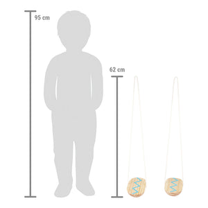 Auf die Stelzen, fertig, los! Diese Stelzen aus Holz im „Active“-Design versprechen fröhlichen Outdoor-Spielspaß, während sie gleichzeitlich Balance und Motorik spielerisch fördern. Die Laufstelzen können sowohl mit der flachen Seite als auch mit der abgerundeten Seite nach unten verwendet werden, womit der Schwierigkeitsgrad variiert werden kann. Während die flache Seite Anfängern zu Beginn mehr Halt bietet, können fortgeschrittene „Stelzenläufer“ die runde Seite wählen und sich so einer größeren Herausforderung stellen. So lässt sich das Sport- und Spielgerät individuell auf Alter und Fähigkeiten der Kinder anpassen. Das Seil zum Festhalten gibt Halt und lässt sich über den Knoten im Griffende an die Körpergröße anpassen. Klassische Laufstelzen aus abgerundeten Holzklötzen, die leicht zu handhaben sind und Gleichgewichtssinn und Koordination trainieren. Ob allein im Parcours, oder zu zweit auf Schnelligkeit – Laufstelzen bieten vielfältige Spielmöglichkeiten und sind ein beliebter Zeitvertreib im Freien.