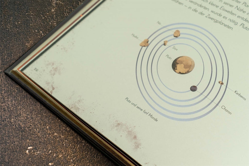 - Beeindruckende visuelle Gestaltung: fantastische Nahaufnahmen, emotionale Fotografien und stimmungsvolle Illustrationen zeigen beispielsweise Fußspuren auf dem Mond, die eisigen Ringe Saturns oder die pulsierenden Überreste einer Supernova.