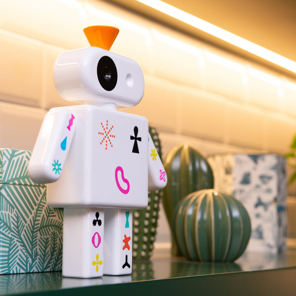 QUENTIN Play erhellt jeden Raum. Dieser Artbot ist bei jedem Abenteuer stets an Ihrer Seite. Sein verspieltes, ikonisches Design ist eine Anspielung auf klassische Joysticks und Controller und lässt das Kind in Ihnen zum Leben erwachen. Limitierte Sammleredition.