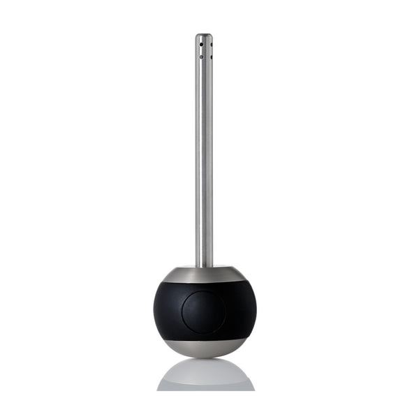• Moderne schwarz-silberne Toilettenbürste mit hin- und herschwenkbarem Griff, im gleichen eleganten Look gestaltet wie ein Tischfeuerzeug mit Piezozündungstechnologie.