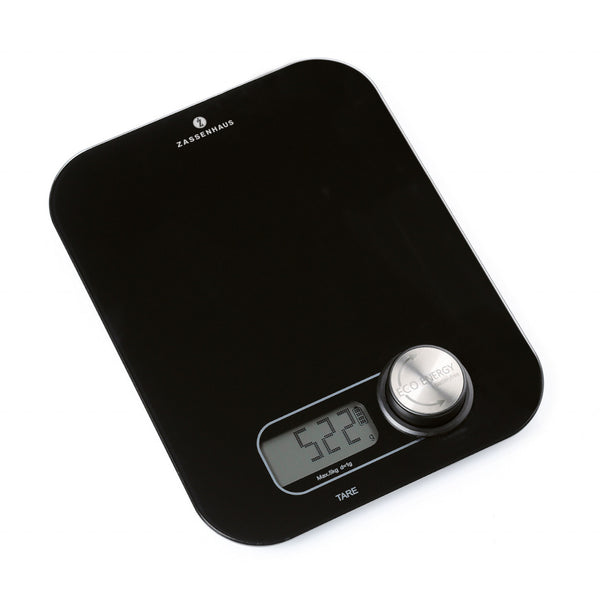 Erst drehen, dann Gewicht sehen. Die Zassenhaus Digitalwaage Eco Energy hat einen eingebauten Dynamo. Durch Betätigen des Drehknopfes wird Bewegung in elektrische Energie umgewandelt – ein Prinzip, das sich beim Fahrrad oder Generator schon seit langem bewährt hat. Der Vorteil hier: Die umweltschonende Waage kommt ohne Batterien aus und ist stets einsatzbereit. Notkäufe im Supermarkt, weil Sie kurz vor dem Backen feststellen, dass die Batterie leer ist, gehören der Vergangenheit an.
