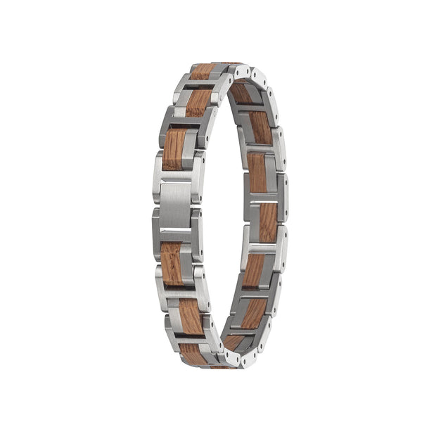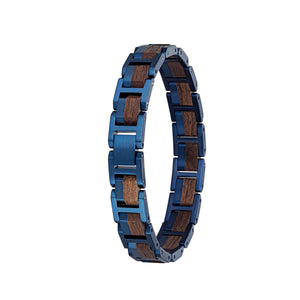 Dieses wunderschöne, elegante Elementarmband ist in zwei Varianten erhältlich: aus Walnussholz und royalblauem Edelstahl gefertigt oder