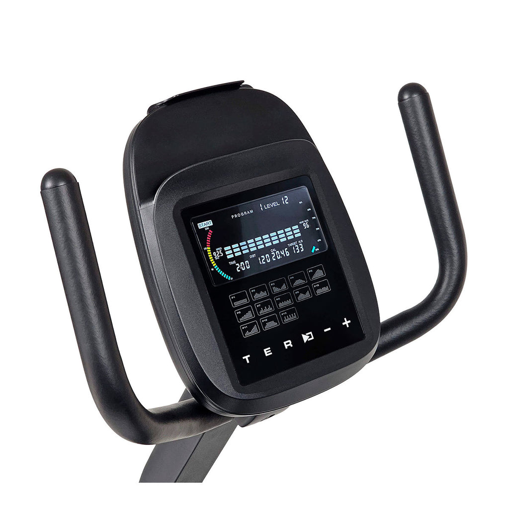 - Der Computer zeigt umfassende Trainingsdaten wie Zeit, Geschwindigkeit, Entfernung, Kalorienverbrauch, Pulsfrequenz, Erholungspuls, Odometer, Watt und Umdrehungen pro Minute (RPM) an.
