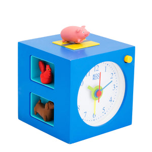 Um den farbenfrohen Kinderwecker zu aktivieren, wird das gewünschte Magnettier einfach auf den Wecker gestellt und die passende Tierstimme gewählt. Die übrigen 4 Tiere haben einen sicheren Schlafplatz an den Seiten des Kubus. So ordentlich aufgeräumt ist der kompakte Würfel ein gutes Beispiel für jedes Kinderzimmer.