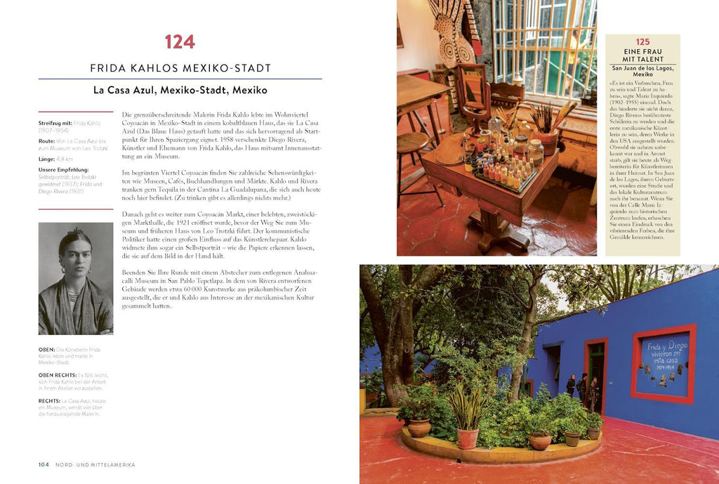Begeben Sie sich mit diesem kompakten Travel-Ratgeber auf eine transkontinentale Kulturreise zum historischen und kulturellen Erbe der vielfältigsten kreativen Genies der Welt. Die vorgestellten Wanderungen und Trails variieren zwischen einfachen kurzen Spaziergängen, halbtägigen Wanderungen und mehrtägigen Touren in unterschiedlichsten Terrains. Geordnet nach Kontinenten, Ländern und Themen wird jede Route kurz und kompakt vorgestellt. Leser:innen erfahren Wissenswertes über die jeweiligen Künstler:innen und dazu, was ihn oder sie beispielsweise mit der vorgestellten Region oder Stadt verbunden hat oder wie es seinerzeit vor Ort aussah. Auf doppelseitig vorgestellten Touren ist die Streckenlänge angegeben und Kartenskizzen vermitteln einen ersten Eindruck vom Verlauf der Wanderung.