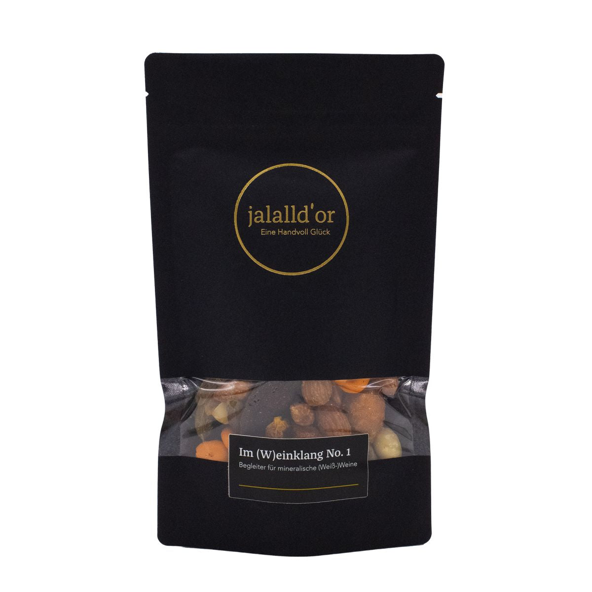 Dieses handliche Paket verbindet zwei Weine in der praktischen 0,375l Größe mit zwei ausgewählten Nussmischungen aus der Serie "Im (W)einklang". Der frische und belebende Riesling Gutswein aus gut ausgereiften Trauben kühler Lagen zeigt jugendliches Fruchtspiel mit Aromen von frischen Äpfeln und Fliederblüten. Die kraftvolle Kreation NERO vereint sieben Rebsorten nach 18 Monaten Holzfassreifung zu einem ausdrucksstarken Rotwein mit beerigen Aromen und feiner Tanninstruktur. Die beiden edlen Nussmischungen im wiederverschließbaren schwarzen Standbeutel mit goldenem Sticker ergänzen die Weine perfekt und machen dieses kompakte Paket zum idealen Geschenk oder zur persönlichen Verkostung. Bio-zertifiziert nach DE-ÖKO-022 steht der Riesling für natürlichen Weingenuss.