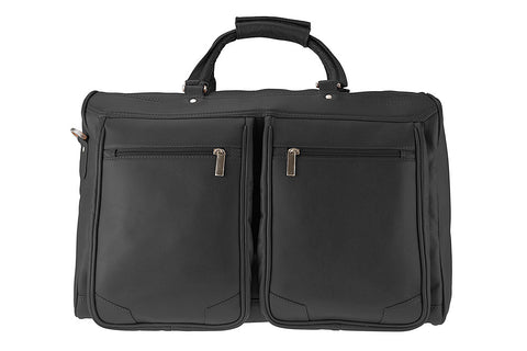 • Eine braune Reisetasche aus Leder mit einem Tragegriff oben und einem vertikalen Reißverschluss in der Mitte, gefertigt aus hochwertigem Vachetta-Leder und mit verstellbaren Trageriemen für zusätzlichen Komfort.