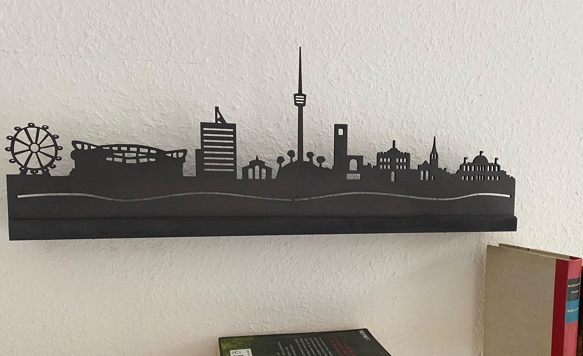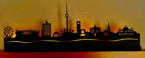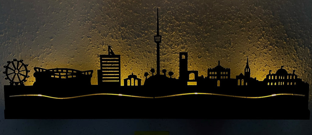 - Beleuchtete Skyline mit 4 LED-Lichtern als Wandschmuck mit Halterung oder zum Aufstellen im Regal.