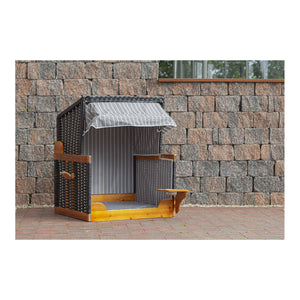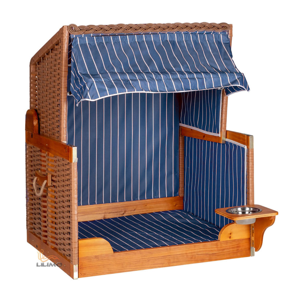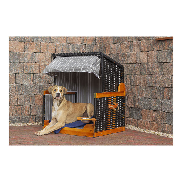 Der Strandkorb ist speziell für Hunde gestaltet, spiegelt aber bis ins Detail einen "richtigen" Strandkorb wider. Die Markise lässt sofort Urlaubsfeeling aufkommen und bildet die perfekte Ergänzung zum Strandkorb der Halter.